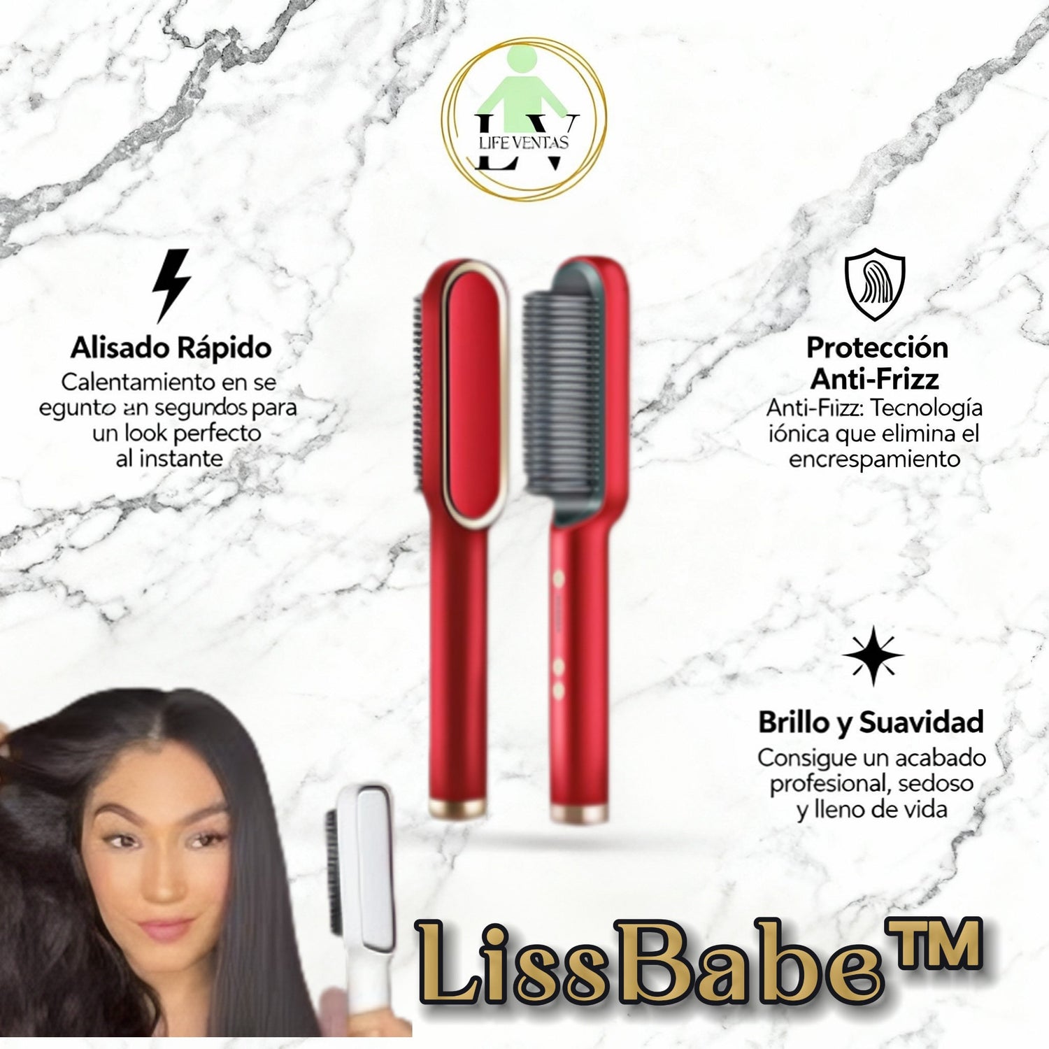 💁♀️ LissBabe™ combina tecnología iónica + cerdas térmicas inteligentes, que Alisan y eliminan el frizz sin dañar el cabello y otorga un brillo espectacular.